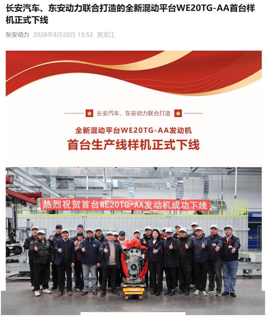 長安汽車與東安動力攜手,WE20TG-AA混動專用發(fā)動機首臺樣機成功下線