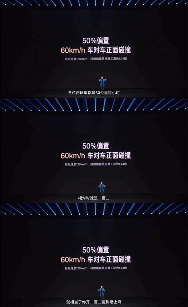 根據中汽中心公布的測試數據,新一代SU7在50%偏置碰撞測試中,采用兩車以60km/h相對速度對撞的測試方式,實際碰撞能量達到標準工況的1.44倍。雷軍特別強調,這種測試條件模擬了現實中更嚴苛的交通事故場景,能更全面評估車輛結構安全性。他同時澄清,此前在發布會上將"相對速度120km/h"錯誤類比為"120km/h時速撞墻",這一表述確實存在物理概念混淆。