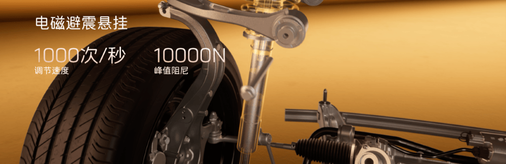 電磁避震技術則支持全段阻尼無級調整,采用低摩擦力電磁液配方,并進行了系統算法優化,信息采集更快、路況判斷更精準。在連續減速帶、井蓋、碎石路等路況下,電磁避震技術以每秒1000次阻尼無級調節匹配路面變化,連續過濾顛簸與沖擊,提升駕乘舒適性。在緊急避讓、急加減速、高速過彎等瞬態大阻尼場景中,電磁避震技術可在0.05m/s活塞速度下瞬態建立超3500N阻尼力,快速抑制車身側傾與俯仰。在高速飛坡、高速起伏路等懸掛大行程場景中,電磁避震技術可輸出超10000N峰值阻尼強力支撐車身,避免觸底情況發生。