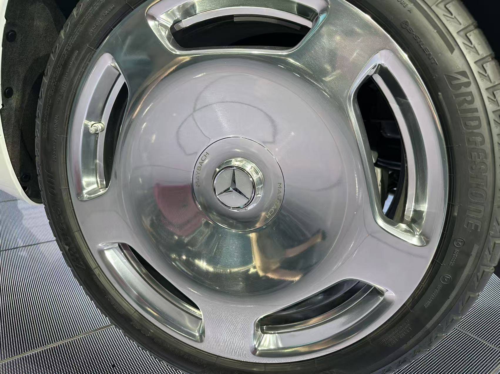 外觀方面,新車新增20英寸多輻鍛造輪轂與21英寸金色MANUFAKTUR定制輪轂,輪轂中心的三叉星徽采用懸浮式設計,即便在車輪轉動時也能保持正向直立。車側迎賓踏板集成投影裝置,可在地面投射“MAYBACH”字樣,配合分段式尾燈內嵌的3枚星徽飾件,形成前后呼應的視覺效果。新增的“極夜風格組件”與MANUFAKTUR專屬車漆中,帶金屬光澤的海岳藍色漆面尤為引人注目,而經典黑、白、灰、銀雙色車漆仍由工匠手工噴涂,每臺車需耗時一周完成。
