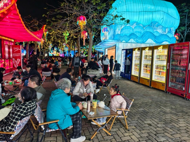 與此同時,園博苑花燈樂園對于家長也有很強的友好度。相比節奏過快、動線擁擠的高密度夜游場景,這里更具園區型空間的舒展感,能夠讓家庭游客在花海、園林與燈影交織的氛圍中,以更輕松的節奏邊走邊逛、邊看邊玩。夜晚的大秀演藝帶來足夠的看點和儀式感,NPC互動提升陪伴的參與度,電音節則為整體氛圍注入更鮮活、更熱鬧的春夜情緒,而各類 餐飲小吃和休閑消費場景 的加入,也讓“夜游”從單一觀賞變成一場更完整的家庭出游體驗。孩子可以玩得開心,大人也能吃得盡興、逛得輕松、拍得出片,全家人在同一個空間里都能找到屬于自己的樂趣。