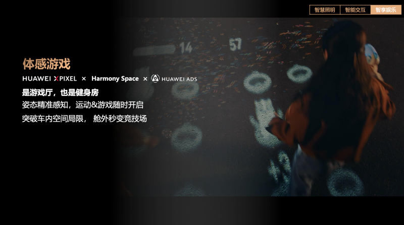 隨著汽車“第三生活空間”屬性的強化,智能車燈正與座艙娛樂深度融合,創造出全新的應用場景。HUAWEI XPIXEL智能車燈模組與鴻蒙座艙、車云聯動,打造“音影空間”“體感游戲”等創新應用場景。戶外露營或休閑時,車輛可化身為移動的“私人影院”。用戶通過車燈投射出的百吋巨幕,結合鴻蒙座艙直連的海量影視資源與音樂,可隨時來一場沉浸式觀影或K歌體驗。同時,依托高精度投影感知算法與智能座艙聲光電系統的協同,用戶甚至可以將車外空間變為游戲場,打破物理空間的限制,讓休閑娛樂不再局限于座艙之內。
