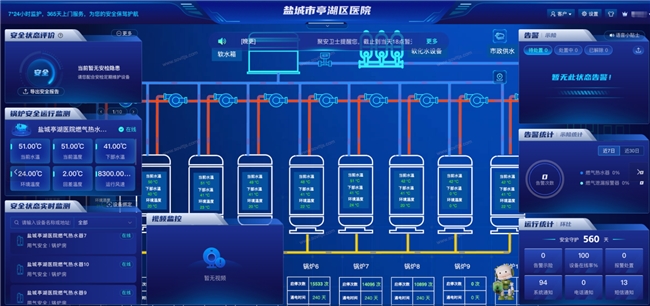 作為集醫療、教學科研、預防保健、康復于一體的二級甲等綜合醫院,鹽城市亭湖區人民醫院肩負著輻射鹽城及周邊區域的醫療服務重任。醫院新院區配備的十臺燃氣真空熱水鍋爐,是保障診療秩序、病患生活的關鍵 “生命線”。醫院人員密集、疏散難度高,對鍋爐安全、用氣安全、穩定運行提出極致嚴苛的要求,為全面筑牢安全底線,醫院攜手新智聚安,共同探索智能化管理解決方案。