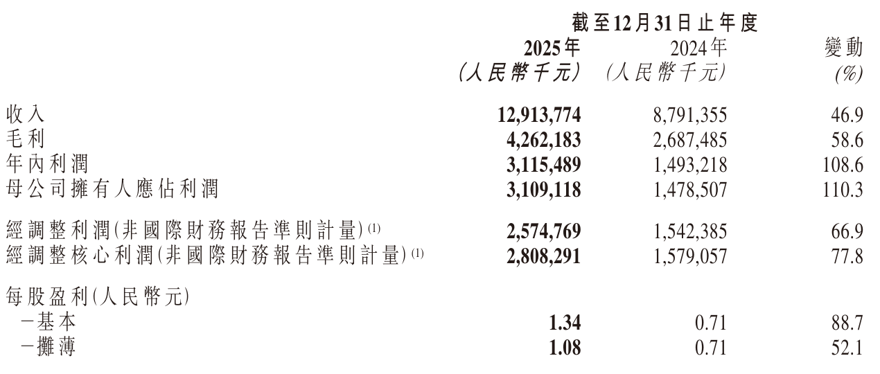 在盈利表現方面,古茗控股2025年毛利達到42.62億元,同比增長58.6%;年內利潤為31.15億元,較上年同期的14.93億元實現108.6%的躍升。經調整后,公司凈利潤為25.75億元,較上年增長66.9%,另一項經調整凈利潤指標為28億元,同比增長77.8%。這些數據表明,公司在成本控制與利潤優化方面取得了積極成果。