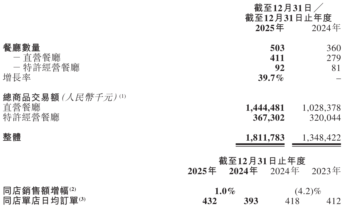 經營效率指標方面,同店單店日均訂單量穩定在432個,同店銷售額實現1%的溫和增長。更值得關注的是盈利能力的大幅提升:全年凈利潤達1.06億元,同比增幅74.8%;經調整后凈利潤躍升至1.35億元,同比激增111.9%;經調整凈利率從5.5%提升至8.3%,較上年優化2.8個百分點,反映出企業成本控制與運營效率的顯著改善。