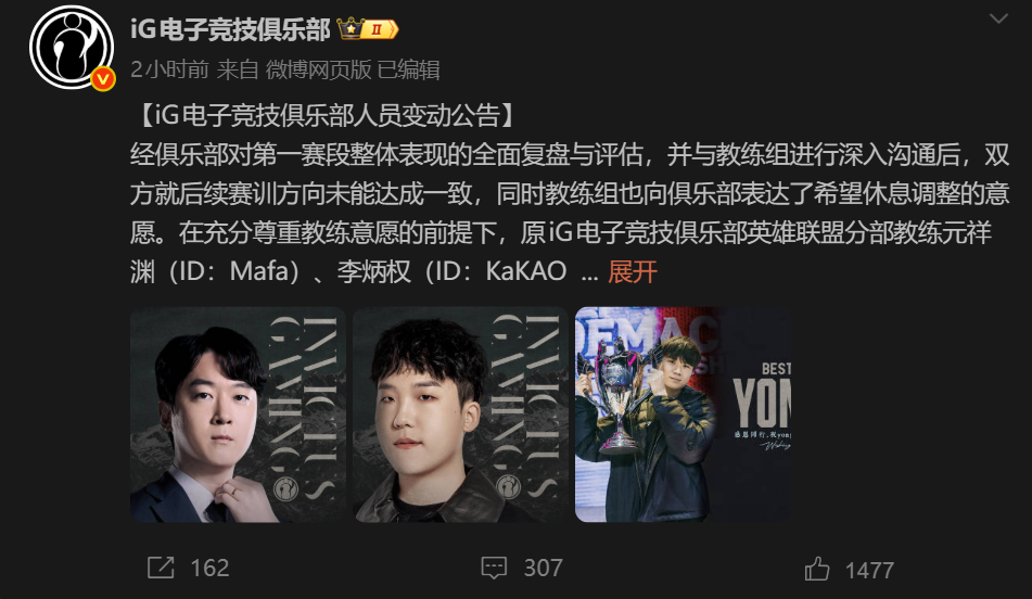教練組方面,元祥淵(ID:Mafa)、李炳權(quán)(ID:KaKAO)、權(quán)勇秀(ID:yongsoo)三人集體卸任。俱樂部透露,此次調(diào)整源于對(duì)第一賽段表現(xiàn)的全面復(fù)盤,經(jīng)與教練組多次溝通后發(fā)現(xiàn),雙方在賽訓(xùn)方向上存在顯著分歧,且教練組主動(dòng)提出休息調(diào)整的意愿。盡管三位教練在戰(zhàn)術(shù)執(zhí)行、團(tuán)隊(duì)紀(jì)律管理等方面付出諸多努力,但俱樂部評(píng)估認(rèn)為現(xiàn)有教練配置與隊(duì)伍發(fā)展目標(biāo)存在差距,最終決定接受調(diào)整申請(qǐng)。