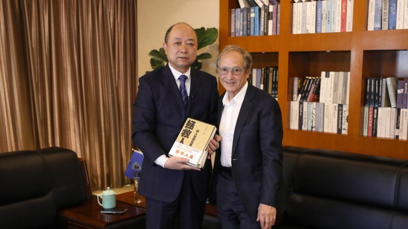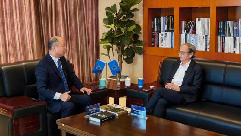 萊維特教授在交流中對胡家奇理事長的學術觀點展現出濃厚的興趣,雙方就科技停止節點和人類幸福問題深入交換意見。