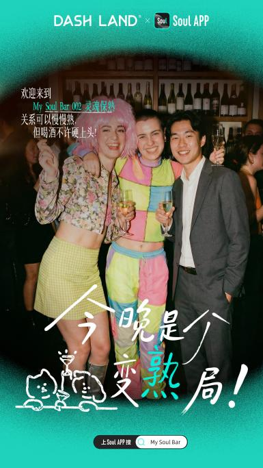這一次 Soul x DASH LAND 聯名酒館開業,酒精不是重點,真實的連結才是。通過這 7 家酒館,Soul 把手機里的“靈魂社交”變成了推門可見的真實陪伴。