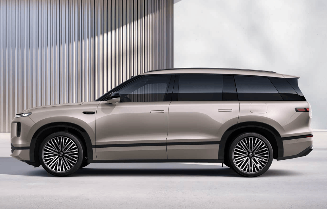 動力系統采用EA211 1.5TEVO II發動機作為增程器,應用VTG可變截面渦輪增壓與深度米勒循環技術,最大功率105千瓦。800V碳化硅平臺搭配極薄硅鋼片,使驅動電機功率密度達7.3kW/kg,最高效率97.5%,最大功率380千瓦,峰值扭矩660牛·米。電池組提供51.1kWh磷酸鐵鋰與65.2kWh三元鋰兩種選擇,后驅車型采用單電機布局,四驅車型搭載前后雙電機系統。底盤配備前雙叉臂+后五連桿獨立懸架,大量使用鋁合金材質減輕重量,雙腔空氣懸架支持150毫米行程與7級高度調節,后輪轉向系統使轉彎半徑僅4.85米。