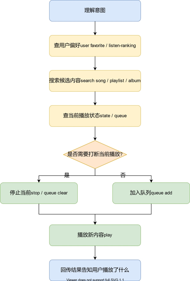 AI 處理一個請求,本質(zhì)上是一個多步推理 + 執(zhí)行的過程。以「幫我播放一首適合現(xiàn)在心情的歌」為例,AI 需要能做這些事: