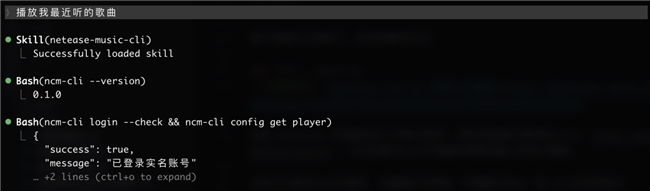 ncm-cli 在這里不只是播放工具,而是音樂數(shù)據(jù)的結(jié)構(gòu)化接口。Agent 拿到這些數(shù)據(jù)之后,可以做任何事——生成圖片、寫報告、分析偏好、發(fā)郵件,取決于你的想象力和 Agent 能調(diào)用的其他工具。