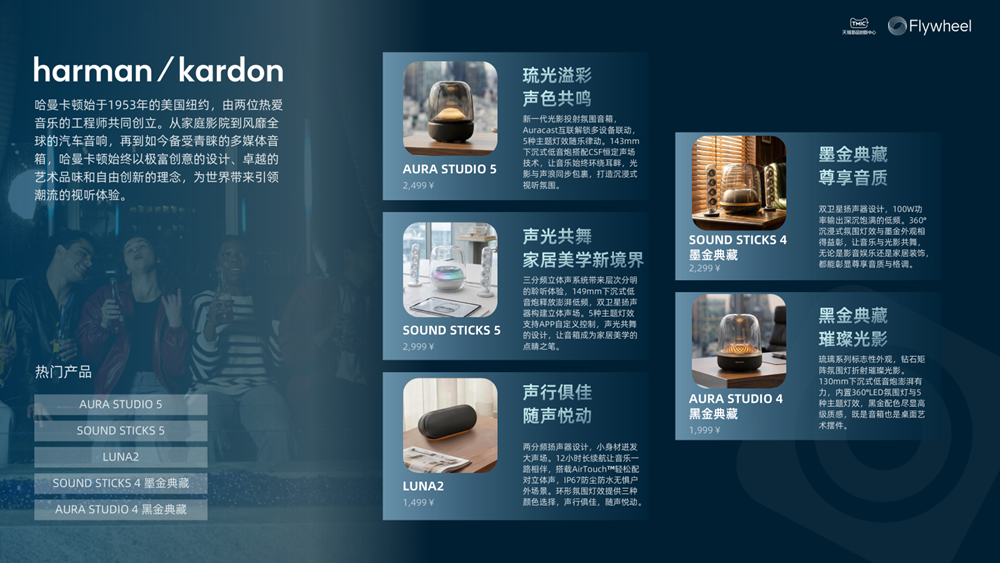 哈曼卡頓作為融合藝術與科技的高端音響品牌,其每一款產(chǎn)品都將藝術化設計與前沿聲學技術無縫融合,在滿足高保真聽感的同時,還以巧妙的燈光與形態(tài)設計,構建出立體化的沉浸場景。AURA STUDIO 5與黑金典藏版AURA STUDIO 4以琉璃造型與璀璨光影營造空間美學;SOUND STICKS 4與墨金典藏版SOUND STICKS 5則通過App控制與多主題燈效,實現(xiàn)桌面場景的聲光聯(lián)動;LUNA2憑借長續(xù)航與IP67防護,成為移動場景中的便攜音質伴侶。這些產(chǎn)品不僅傳承了品牌對藝術與創(chuàng)新的堅持,更精準回應了年輕消費者將音響視為生活美學與情緒載體的新需求。