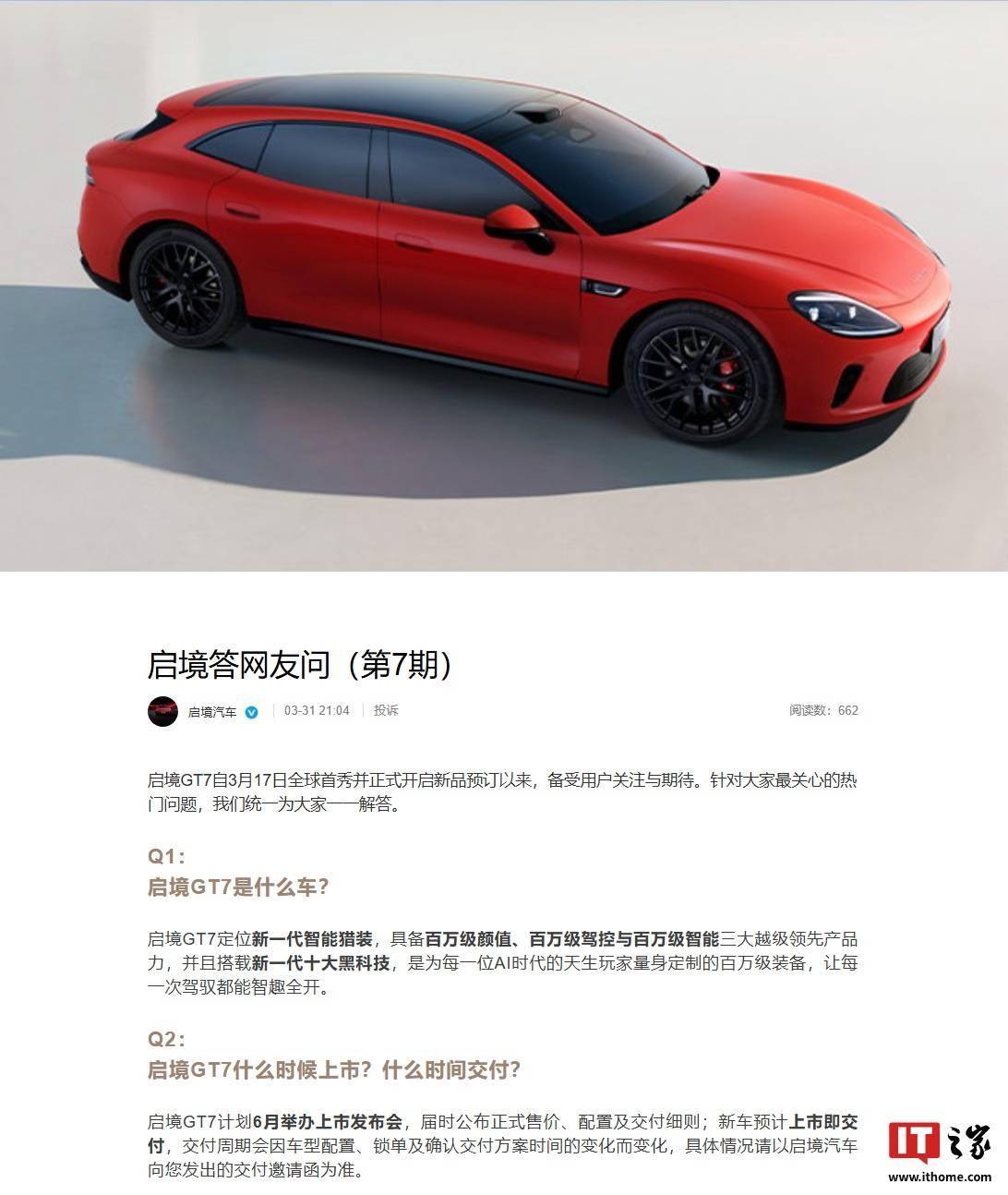 華為乾崑賦能啟境GT7智能獵裝車6月上市 配置豐富預計上市即交付