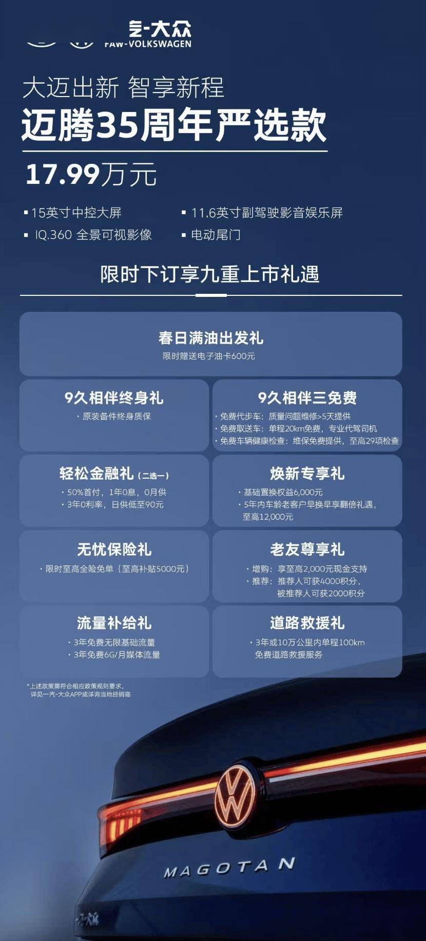 一汽-大眾邁騰“35周年嚴選款”登場 17.99萬享矩陣大燈與L2級智駕