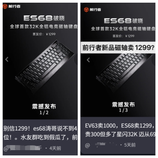 隨著產品細節的陸續曝光,網傳ES68破曉首發價1299元的消息,也在玩家群體中引發了廣泛討論。有玩家對比同價位競品表示,全鋁機身+32K方案的配置組合,在同價位產品中幾乎無對手,其性能與用料的越級表現,有望打破中高端磁軸鍵盤的市場格局;也有玩家對0.008ms延遲的實測表現充滿期待,認為這一參數或將成為電競鍵盤的新標桿。 從曝光的玩家社群討論來看,ES68破曉的關注度持續走高,不少外設博主與玩家已開始提前期待預售,希望能盡快上手體驗,期待這款產品能帶來顛覆性的電競體驗。