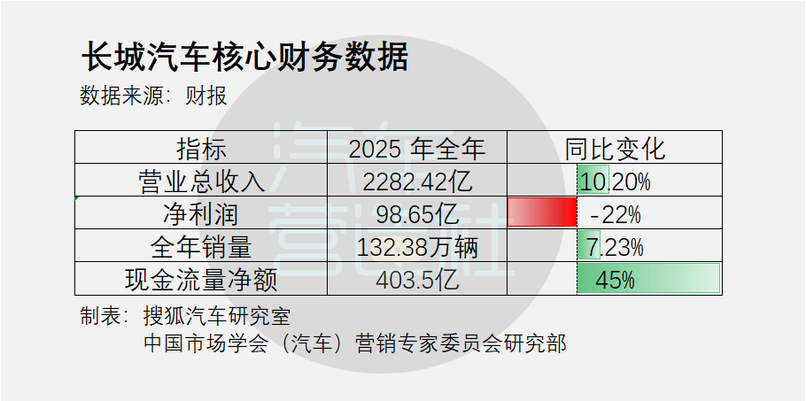 長城汽車2025財報:營收銷量雙增背后 研發銷管雙百億致利潤承壓