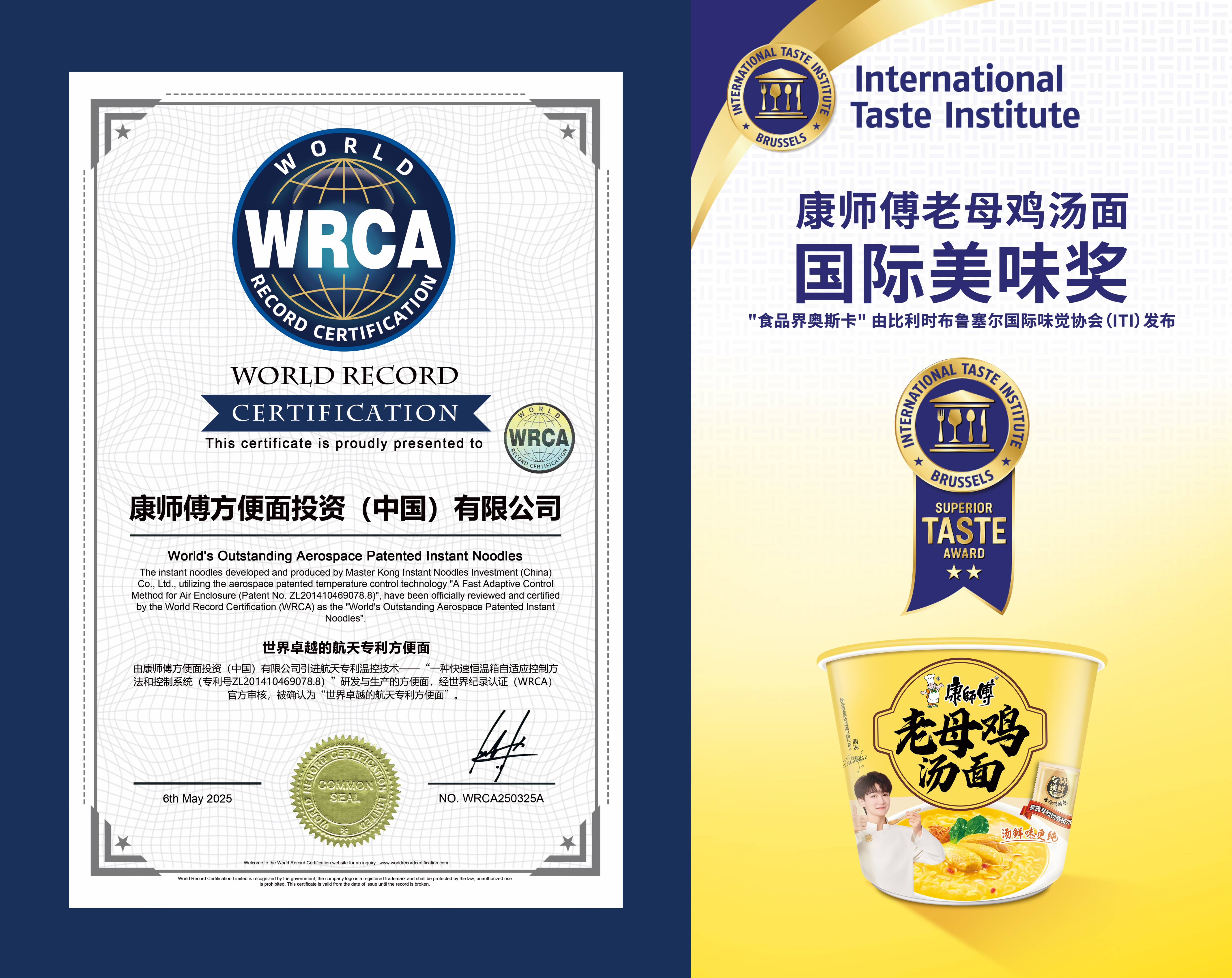 WRCA認證“世界卓越的航天專利方便面”\老母雞湯面獲得國際美味獎