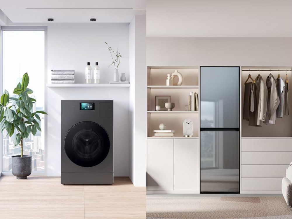左為三星AI神 黑鉆熱泵洗烘旗艦,右為三星AI神 黑鉆衣物護理機