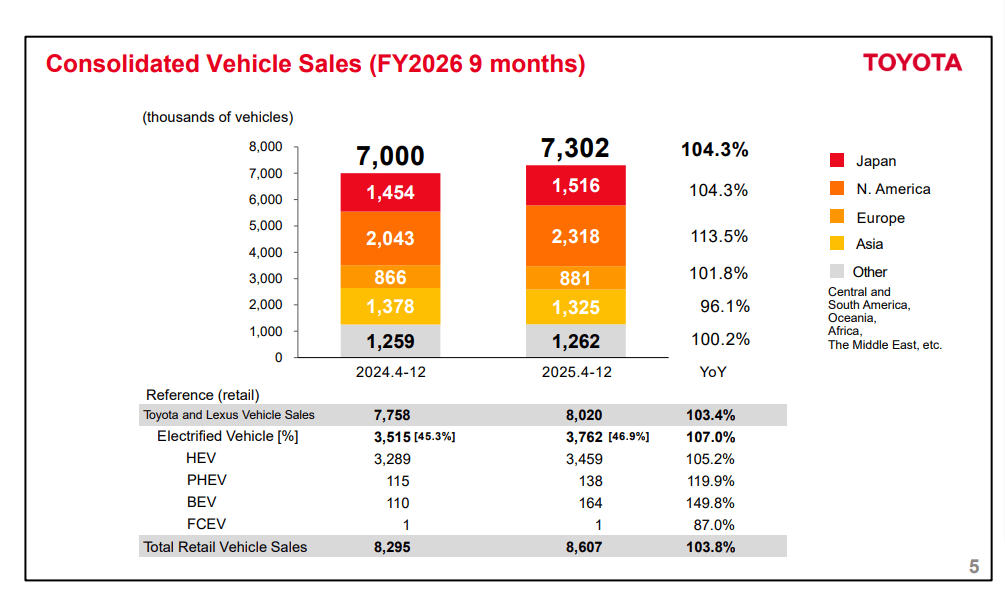 在中國市場,豐田轉型節奏同樣緩慢。2025年推出新款鉑智3X和bZ5等純電動車型,同時依托混動車型優勢,實現銷量178.04萬輛,同比微增0.2%,成為唯一保持增長的日系品牌,但純電車型銷量依然低迷,未能形成競爭力。這種謹慎的轉型策略讓豐田保持了穩定的銷量和利潤,2025財年凈利潤雖同比下滑約25%,但仍遠好于大眾等激進轉型的車企,其全球影響力也因穩定的銷量得以鞏固。不過,豐田也因純電轉型滯后,被市場質疑“錯失新能源機遇”,在全球新能源的影響力逐漸被大眾拉開差距,尤其是在中國、歐洲等新能源滲透率較高的市場,競爭力持續弱化。
