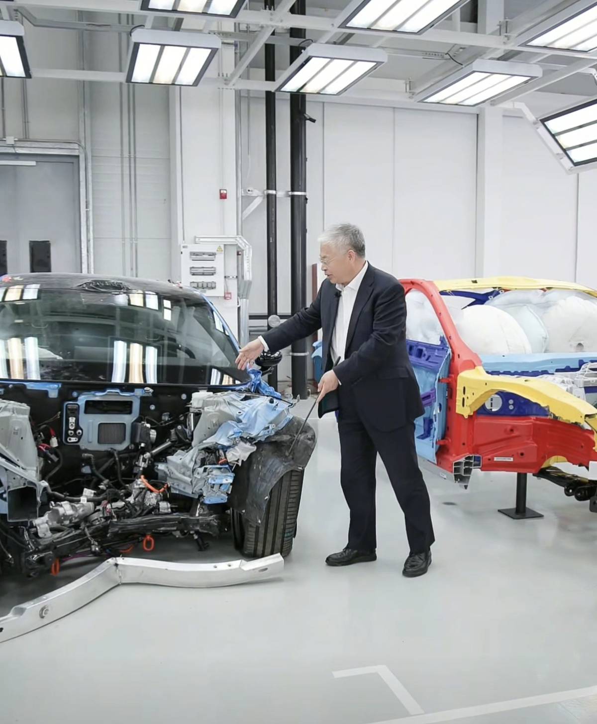 朱西產教授在現場檢查碰撞車輛時指出,車輛前部設計的吸能結構發揮了關鍵作用。他解釋道:“當車輛以高速撞擊時,金屬部件通過特定褶皺變形吸收能量,這種設計能有效保護乘員艙。從測試結果看,小米SU7的碰撞吸能表現已達到國際先進水平。”教授還特別演示了被撞車輛的機械門把手,稱贊其解決了新能源汽車常見的電子門把手故障問題,建議行業推廣此類可靠設計。