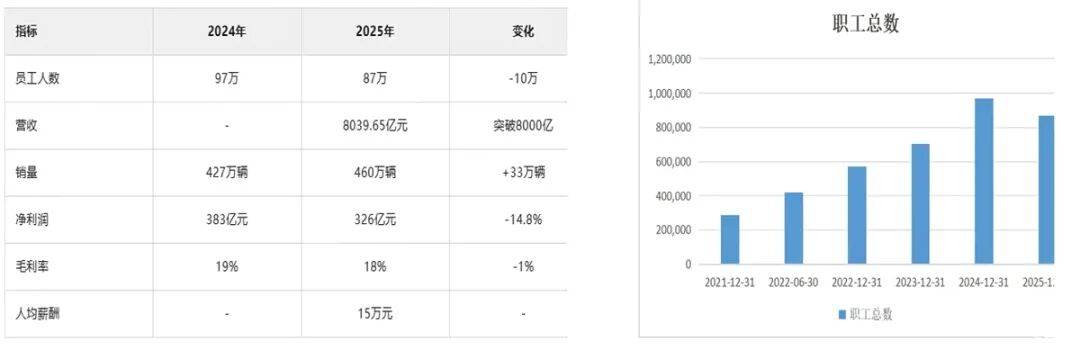 人員調整成為降本增效的直接體現。截至2025年末,公司員工總數86.96萬人,較上一年減少10.2%,這是其歷史上首次出現如此大規模的人員收縮。這一舉措被外界解讀為從粗放擴張轉向精細化運營的信號,反映出企業不愿再延續過去的高強度增長模式。