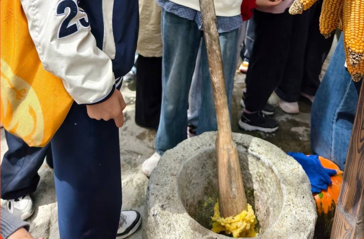 羌寨民居的灶臺旁,木槌捶打糯米的咚咚聲與歡笑聲此起彼伏。村民韓英嬢嬢邊示范洋芋糍粑的制作邊說:“大家合力捶打,象征著團圓和睦,就像我們羌族人鄰里互助的傳統。”孩子們輪流體驗捶打過程,當軟糯香甜的糍粑成型時,不少人感嘆:“原來食物里藏著這么多文化密碼!”在非遺文化研討環節,剪紙紋樣的對稱美學與數學中的對稱原理巧妙碰撞,孩子們通過動手剪紙,直觀理解了抽象的數學概念。