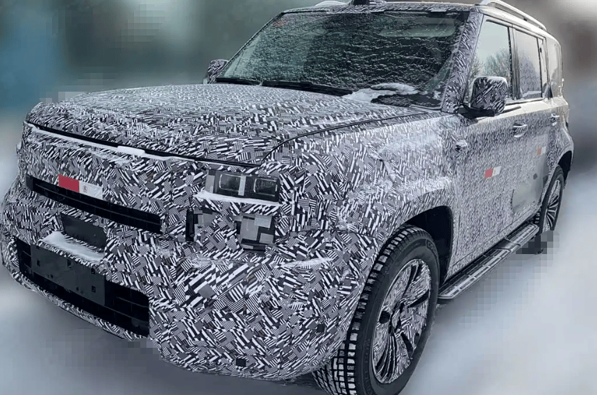 從諜照中可以看到,新車采用了當下流行的方盒子硬派造型,車身整體顯得魁梧大氣。車頭部分,矩形大燈與半封閉式格柵相搭配,下包圍設計厚實,給人一種穩重可靠的感覺。車頂搭載了激光雷達,車身側翼子板也布置有攝像頭,這表明新車將配備高階駕駛輔助系統,為駕駛者提供更安全、便捷的駕駛體驗。車身側面配備了固定式腳踏板,方便乘客上下車;尾部保留了外掛式備胎接口,搭配側開式尾門,硬派越野風格十分濃郁。在車身尺寸方面,新車車長預計超過5米,車寬接近2米,車內采用2 + 2 + 2的六座布局,空間表現相當寬裕,能夠滿足家庭出行或多人乘坐的需求。