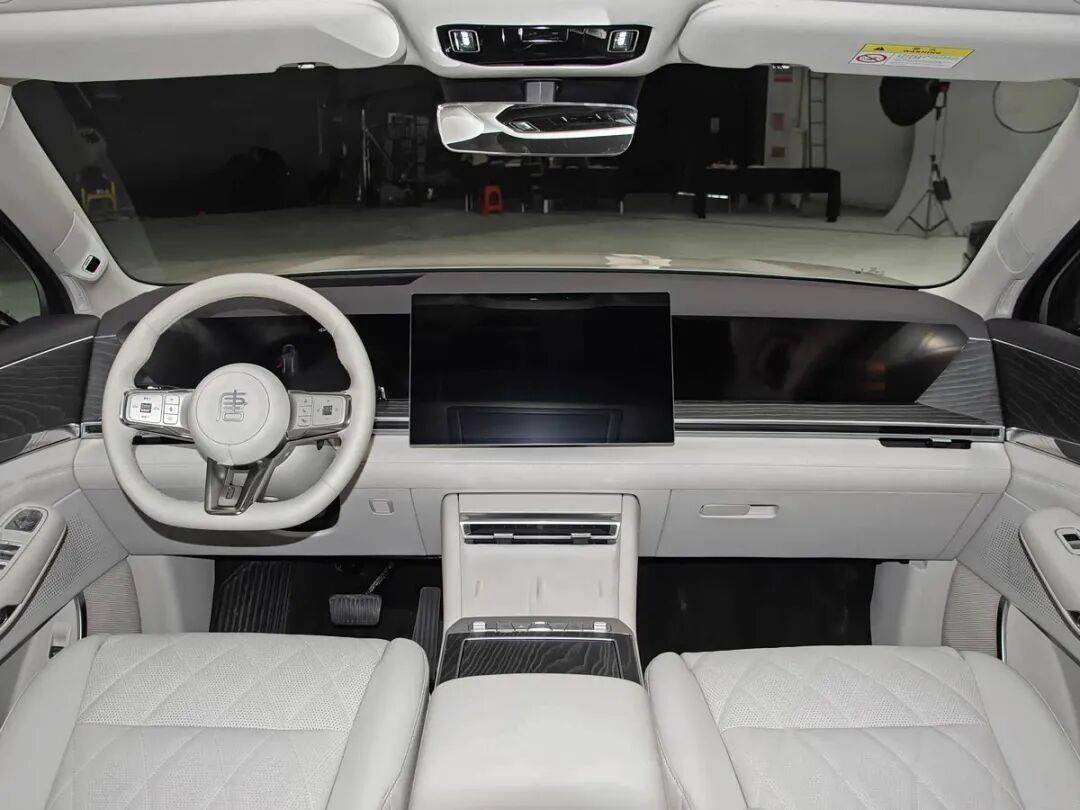 內飾設計融合中國古代建筑靈感與現代科技,中控臺采用木質紋理裝飾,營造出溫馨豪華的座艙氛圍。方向盤為全新樣式,搭載三屏交互系統,包括全液晶儀表、懸浮式中控屏及副駕娛樂屏,并配備HUD抬頭顯示與27揚聲器帝瓦雷音響。中控臺下方設有無線充電面板,保留實體快捷按鍵,后方為木質杯架遮蓋。車門開關采用電子按鍵設計,取代傳統機械門把手,進一步凸顯科技屬性。