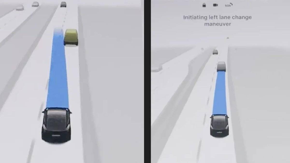 界面可視化升級是本次調整的另一重點。系統新增了"正在啟動變道"的實時提示,配合黃色高亮標注前車的動態效果,使駕駛員能清晰感知神經網絡對周圍車輛的追蹤狀態。這種色彩強化機制在車輛變道或接近前車時自動觸發,通過視覺反饋構建更透明的決策鏈路。特斯拉還為FSD功能設置了專屬切換按鈕,其操作邏輯類似于導航快捷開關,允許駕駛員在全屏FSD視角與音樂、設置等菜單間快速切換,提升多任務處理效率。
