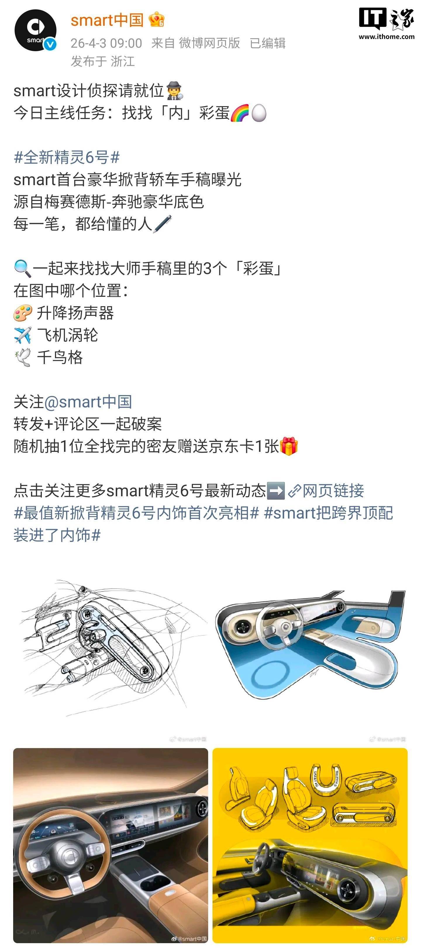 smart精靈#6 EHD內(nèi)飾手稿亮相!升降揚(yáng)聲器等彩蛋,2026北京車(chē)展首秀