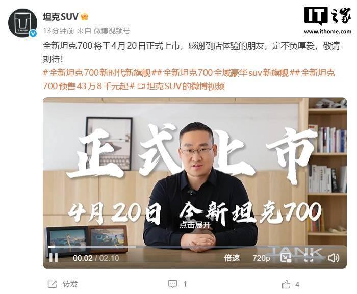 長城汽車旗下坦克品牌近日宣布,備受矚目的全新坦克700將于4月20日正式登陸市場。此前,這款新車已在3月30日啟動預售,價格區間設定為43.8萬元至51.8萬元,引發了消費者的廣泛關注。
