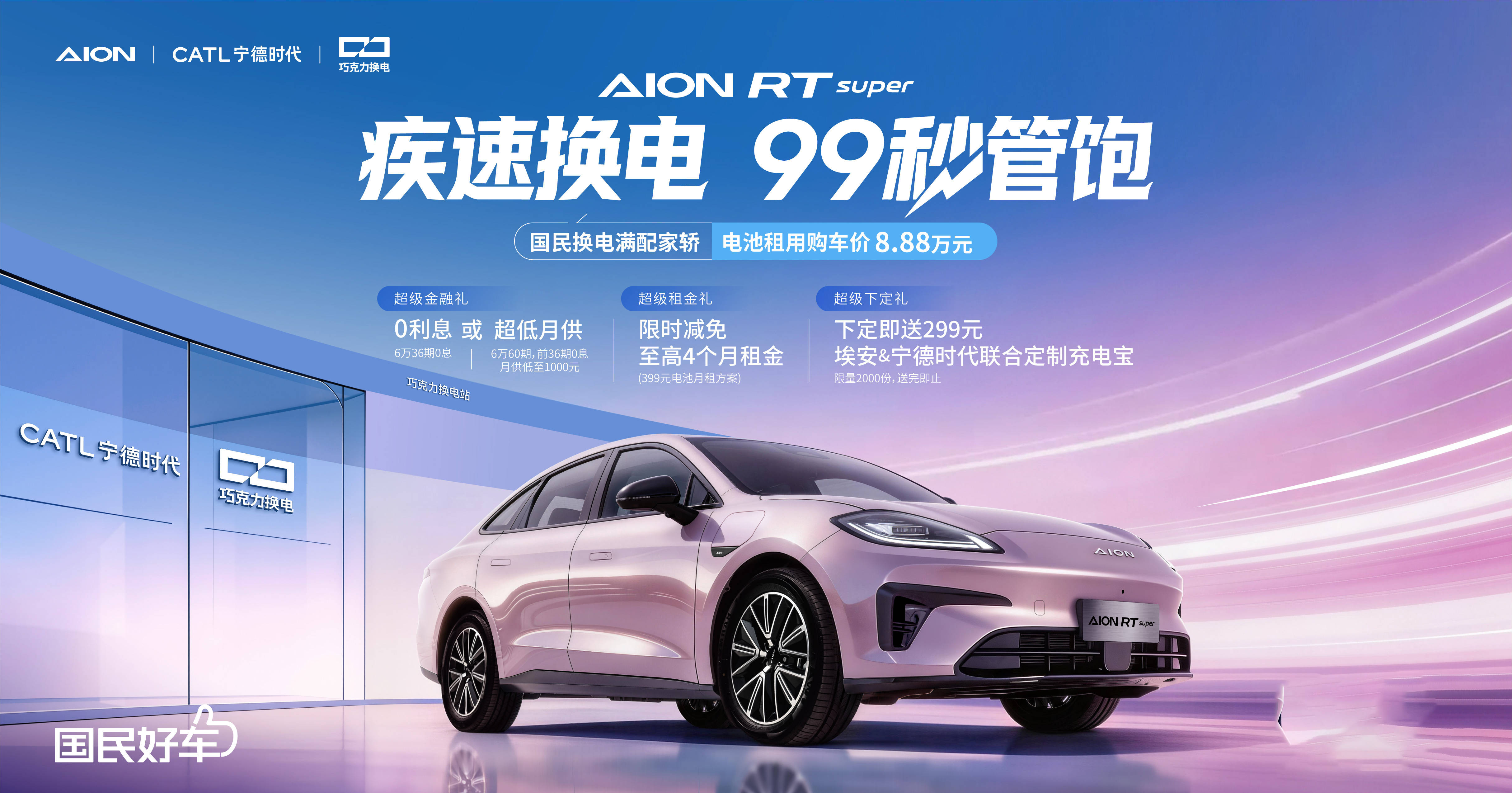 埃安RT super換電版上市:99秒極速換電 購車價8.88萬享多重權益