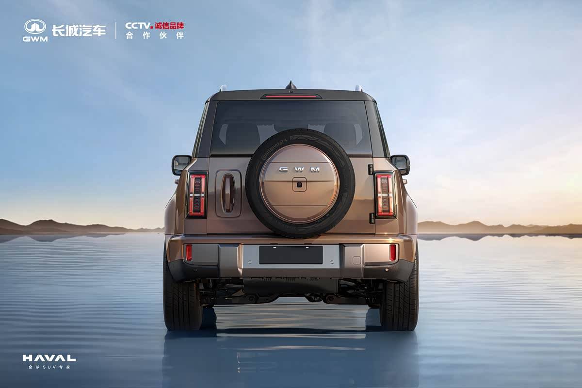 尾部設計完美詮釋了越野車的經典元素,豎向排列的尾燈組采用復雜燈腔結構,點亮后效果極具辨識度。側開式尾門搭配外掛式備胎設計,既實用又彰顯硬派氣質。根據官方透露的信息,尾燈組在夜間點亮時將呈現出獨特的視覺效果,進一步強化整車的科技感與豪華感。