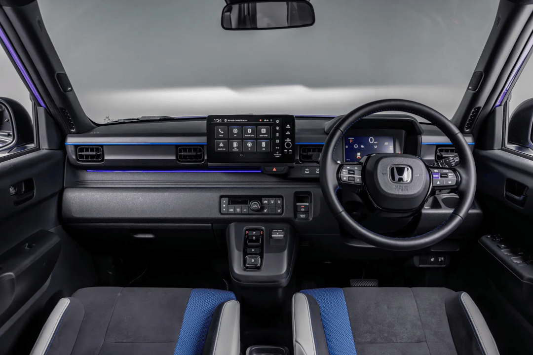內(nèi)飾設(shè)計(jì)延續(xù)了活潑風(fēng)格,配備支撐性座椅與藍(lán)色裝飾條,Boost模式激活后氛圍燈會(huì)切換為紫色,同時(shí)底盤(pán)調(diào)校也針對(duì)歐洲路況進(jìn)行強(qiáng)化,剛度顯著高于日本本土的N-One e:版本。本田工程師特別強(qiáng)調(diào),懸架系統(tǒng)經(jīng)過(guò)重新優(yōu)化,以適應(yīng)英國(guó)與歐洲多變的道路條件。