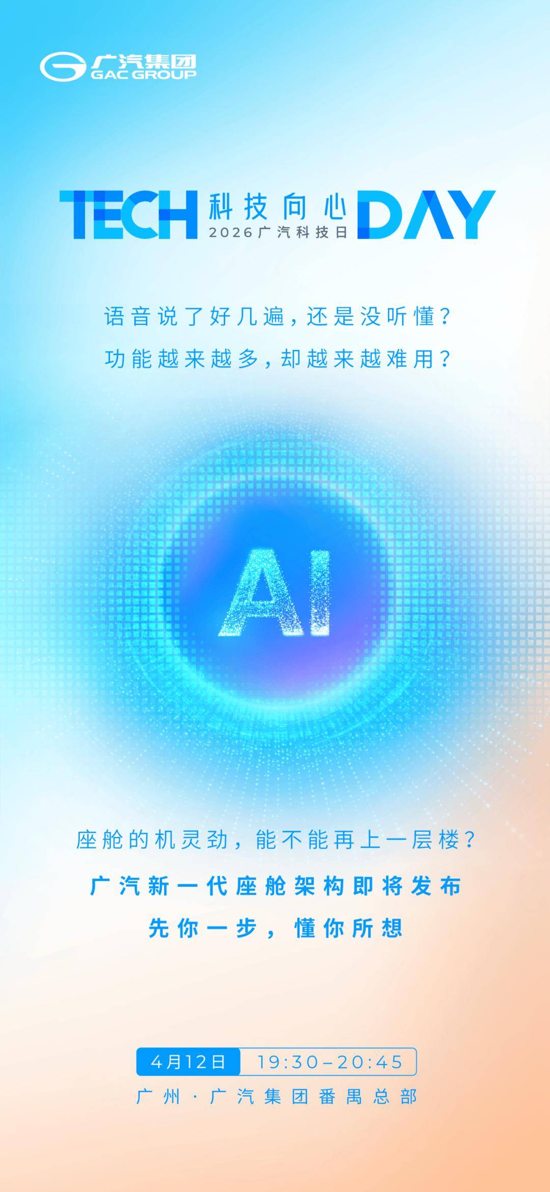 廣汽集團番禺總部即將迎來一場科技盛宴——2026廣汽科技日將于次日盛大啟幕。此次活動以“科技向心”為核心主題,廣汽將攜新一代端云一體智能座艙架構、電子電氣架構及芯片生態共建的最新成果亮相,全面展示其在智能出行領域的創新實力。