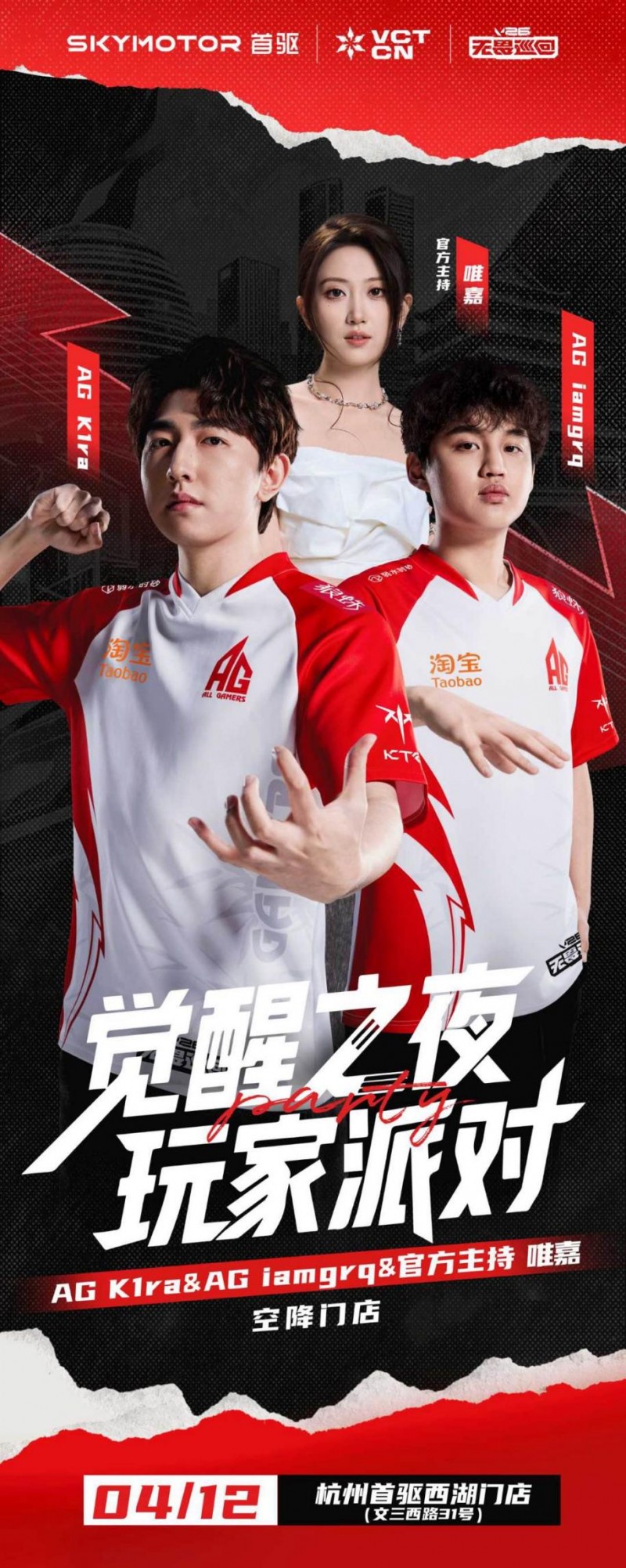 在線下場景方面,首驅也嘗試將門店升級為賽事聯動空間,融合產品展示、賽事觀賽、粉絲互動等功能。此次無畏巡回杭州站期間,西湖區旗艦店將將以“覺醒之夜·玩家派對”為主題,將門店打造為可玩、可社交的玩家據點和城市社交入口。根據安排,活動將于4月12日18時正式開始,現場將設置熒光手繪、NPC對抗、音樂演出等互動環節。VCT CN明星選手AG K1ra、AG iamgrq及無畏契約電競賽事官方主持唯嘉將以“一日店長”身份到場,參與互動挑t戰、簽名合影等環節。其間,AG K1ra 還將現場抽獎,獎品包括首驅電動車、親筆簽名照及賽事周邊。