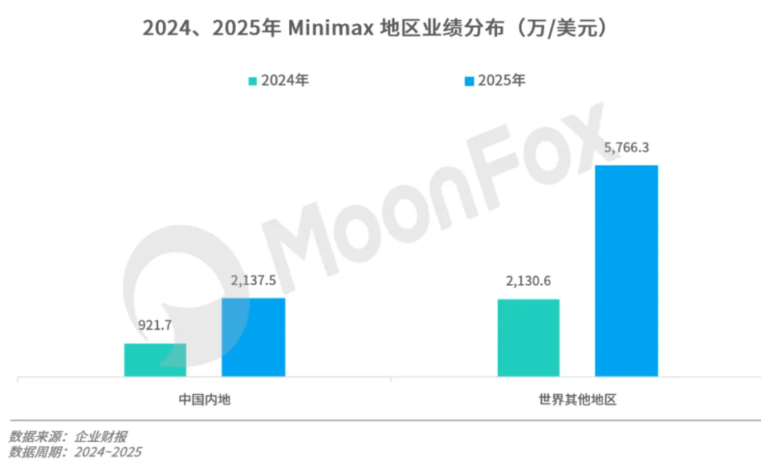2025年財報顯示,MiniMax總收入達7903.8萬美元,同比增長158.9%;毛利2010萬美元,同比激增437.2%,毛利率提升至25.4%。國際市場貢獻了超70%的收入,顯示出其全球化戰略的初步成效。從數據看,這家公司已擺脫“純技術理想主義”的標簽,將產品、平臺與商業化同步推進,形成了一張看似龐大的商業網絡。