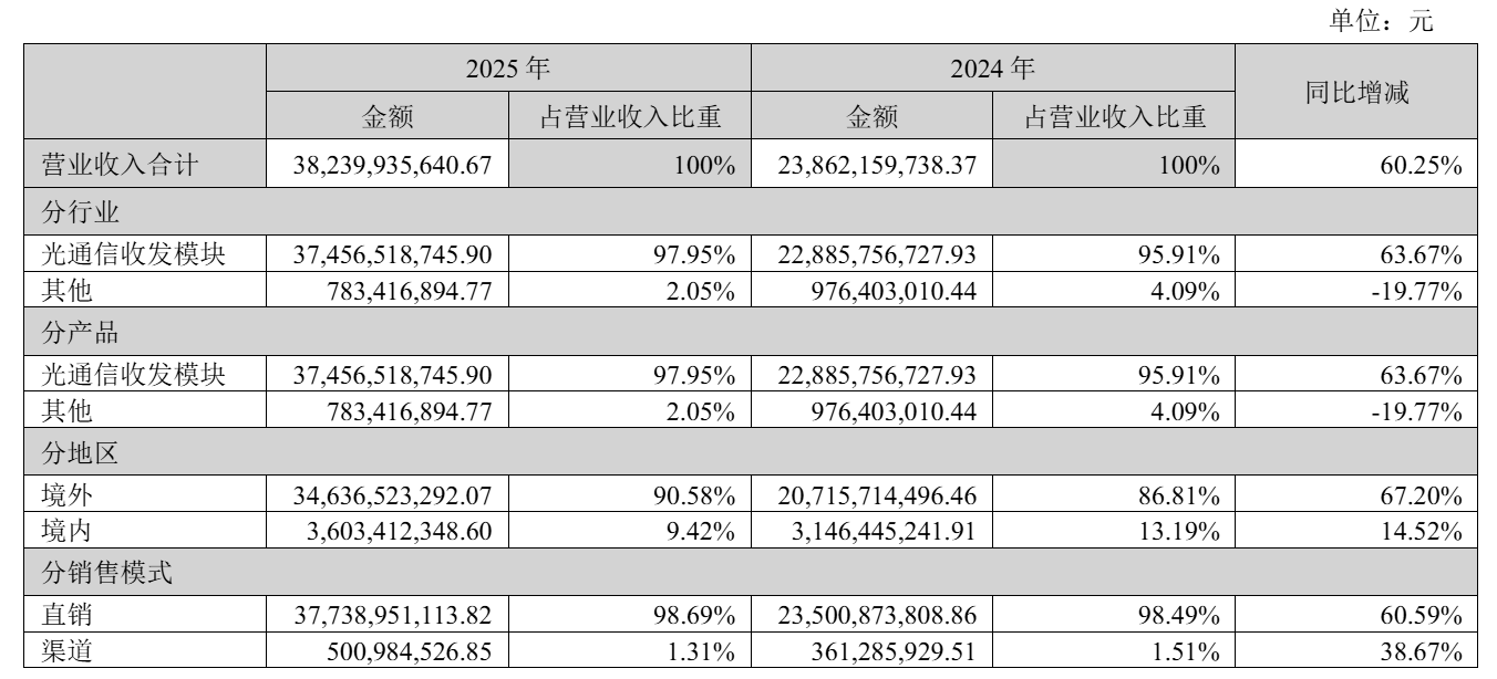 中際旭創(chuàng)2025年成績亮眼:營收382.4億 凈利破百億達108億