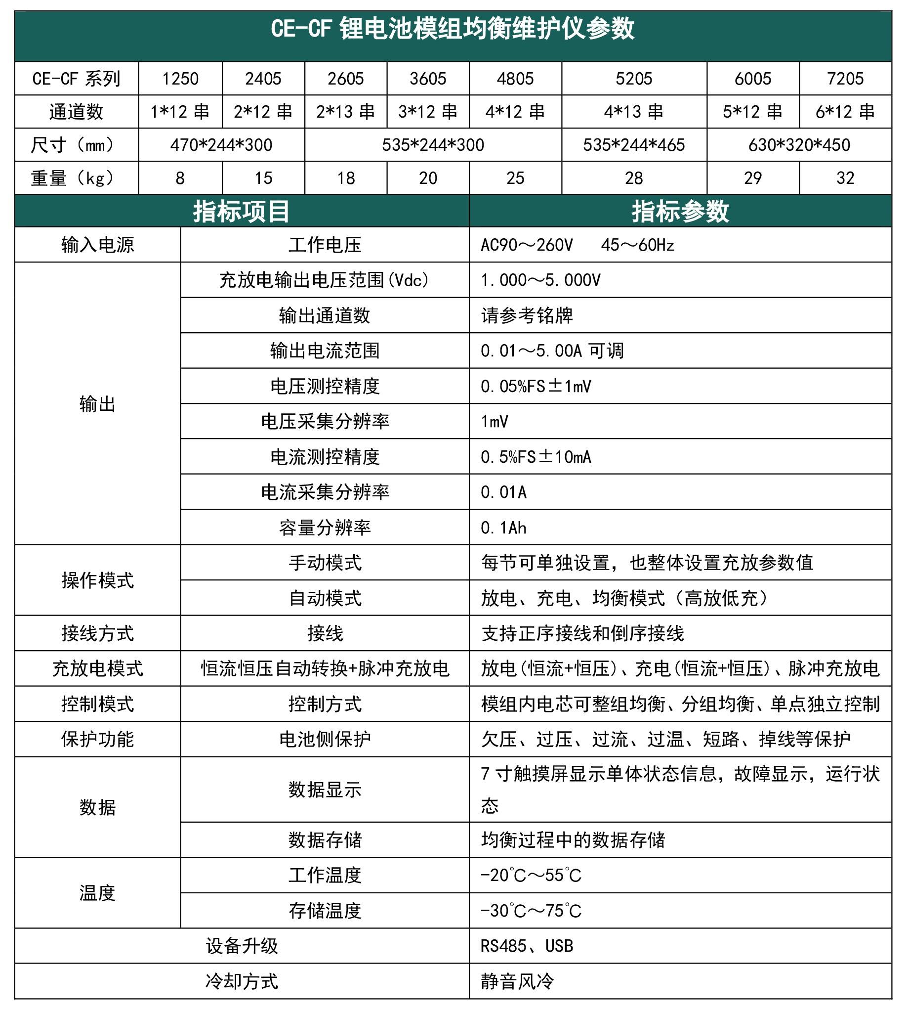 CE - CF鋰電池均衡儀多場景適配能力強(qiáng)。在新能源汽車的4S店和電池維修機(jī)構(gòu),它能精準(zhǔn)監(jiān)測電壓,快速定位電芯壓差,恢復(fù)車輛續(xù)航能力,降低電池更換成本,在售后維修、電池倉儲、租賃共享等場景發(fā)揮重要作用。在儲能電站運維中,支持多通道并行操作,實現(xiàn)批量作業(yè),結(jié)合數(shù)據(jù)分析功能提升儲能系統(tǒng)容量利用率,降低年均容量衰減率,節(jié)省運維成本。面對退役動力電池重組應(yīng)用難題,它能快速篩選并激活一致性落后的退役電池包,提升檢測分容效率,實現(xiàn)資源循環(huán)利用,創(chuàng)造二次價值。