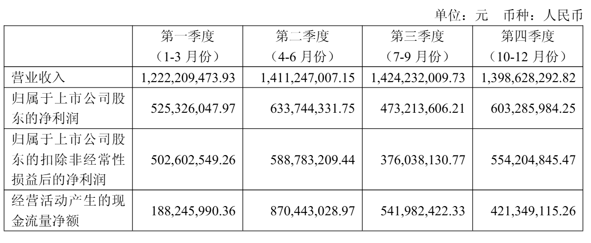 從季度表現來看,2025年第四季度公司營業收入為14億元,凈利潤達到6億元,扣除非經常性損益后的凈利潤為5.54億元,為全年業績增長提供了有力支撐。